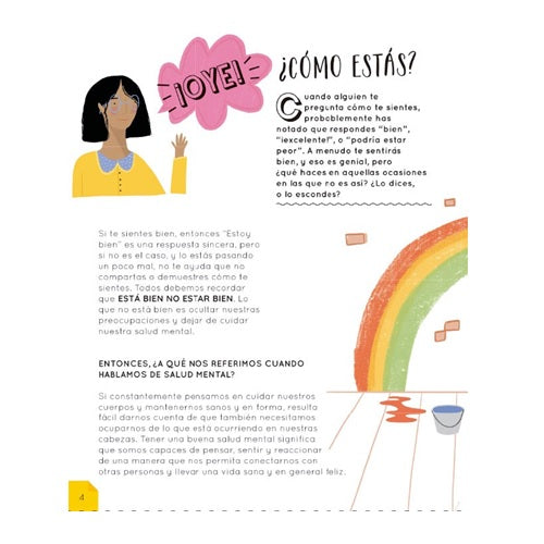 Aquí exploraremos algunas de las dificultades con las que podrías enfrentarte, incluyendo problemas de salud mental muy habituales, como el estrés y la ansiedad, los pensamientos negativos, trastornos alimenticios o alguna situación de bullying. Reflexionaremos acerca de por qué pasan este tipo de cosas y cómo cuidarte para que no se vuelvan abrumadoras. Está bien no estar bien es una completa y positiva guía para el bienestar y el autocuidado, llena de ideas y herramientas que te ayudarán a sentirte feliz y saludable.