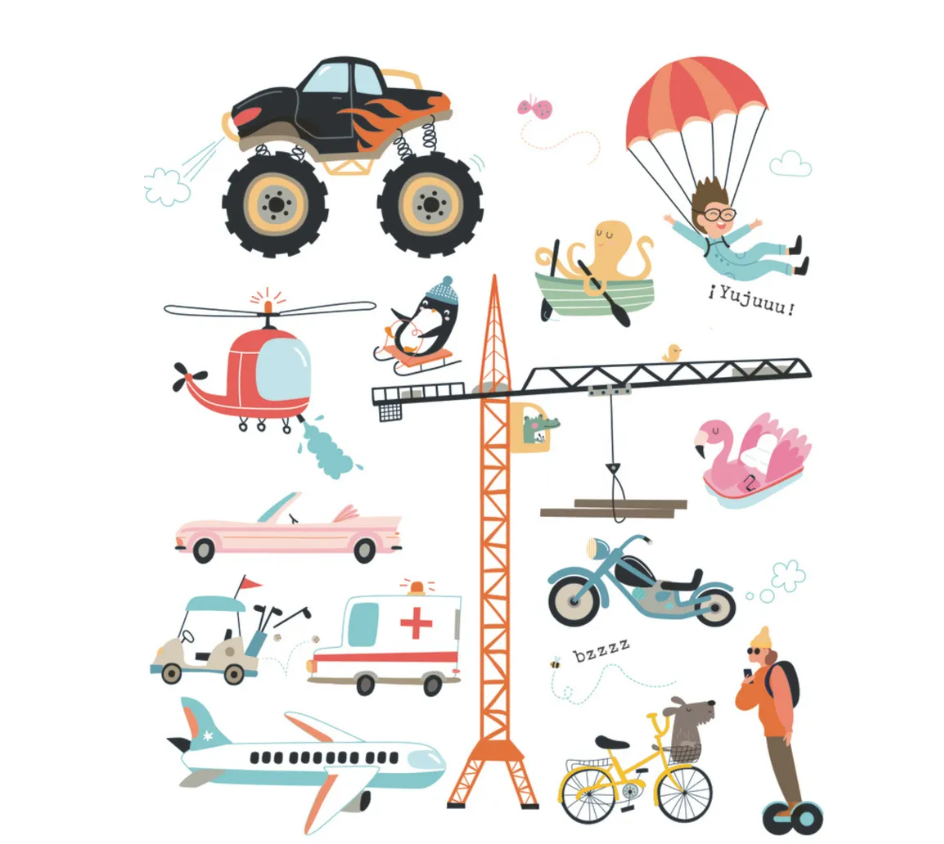 Este es un libro que captura la curiosidad de niñas y niños y transforma cada objeto en una oportunidad de aprendizaje. Las páginas invitan a nombrar, describir y comentar mientras se fortalece la observación y la memoria de los distintos tipos de vehículos que han hay en todo el mundo. Desde coches, bicicletas, limosinas, tractores, entre muchos otros.